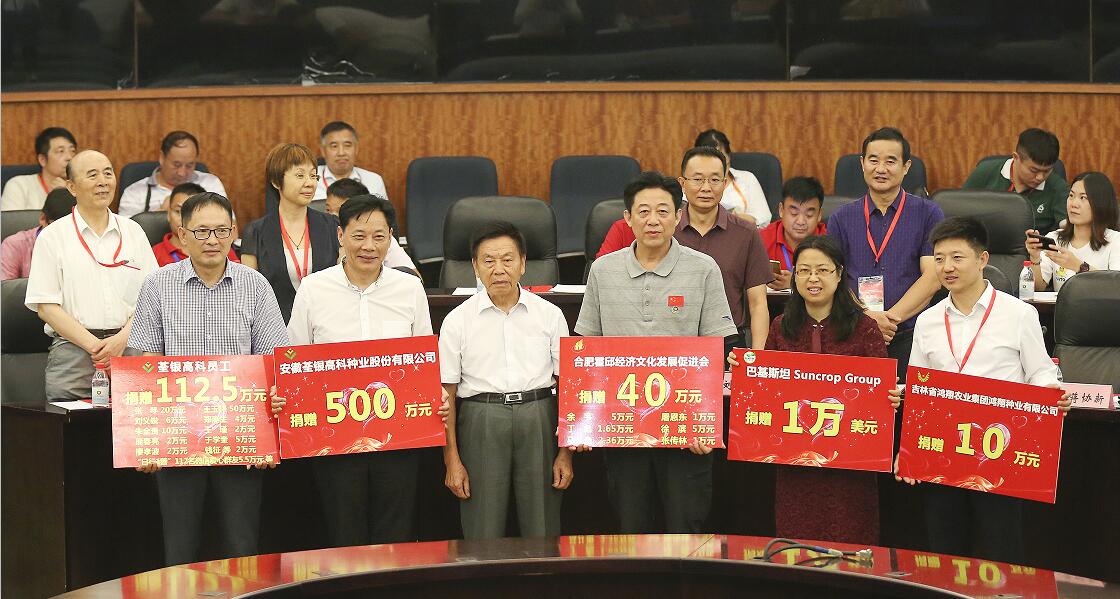 善人者,人亦敬之。張海銀種業(yè)基金會五年來的公益慈善活動得到社會各界愛心人士和愛心單位600余次的的慷慨捐贈,累計950多萬元。會上還進行了基金會2018年公益愛心捐贈儀式。荃銀高科母子公司高管和員工多次參與基金會濟困助學(xué)公益慈善活動,本次捐贈112.5萬元;吉林鴻翔種業(yè)集團鴻翔種業(yè)有限公司捐贈10萬元;巴基斯坦Suncrop Group(陽光作物集團)捐贈1萬美元;合肥霍邱經(jīng)濟文化發(fā)展促進會及會員為基金會貧困助學(xué)項目捐贈40萬元;安徽荃銀高科種業(yè)股份有限公司捐贈500萬元。基金會將按捐贈人捐贈的意愿和在業(yè)務(wù)范圍內(nèi)開展公益項目和慈善活動。